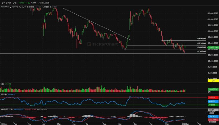 مؤشر افتتاح جلسة اليوم الاحد 11/1/2026 أنهى المؤشر جلسة الخميس عند مستويات 10473 بارتفاع 18 نقطةالدعوم الحالية للمؤشرالدعم الحالي 10400المقاومات...