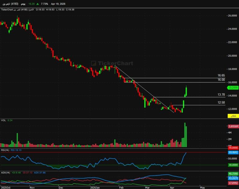 نايس ون (4193) يخترق النطاق العرضي ويقود قائمة الأسهم الأكثر ارتفاعًا