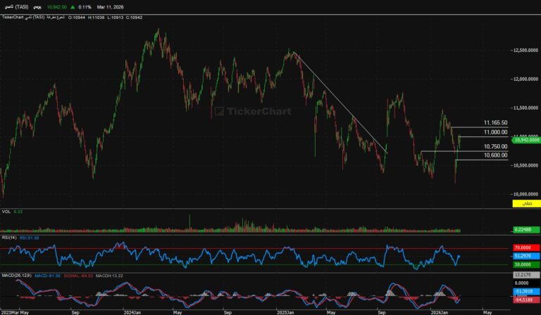 أنهى المؤشر الجلسة الماضية عند مستويات 10946 بارتفاع 59 نقطةالدعوم الحالية للمؤشر الدعم الحالي 10750المقاومات الحالية للمؤشرالمقاومه الحالية للمؤشر 11000
