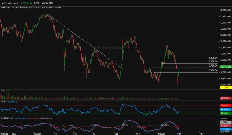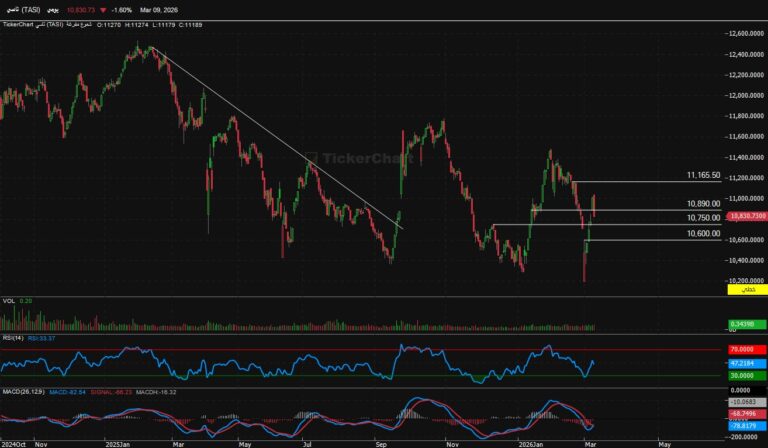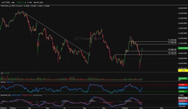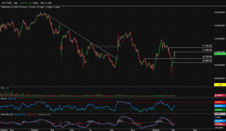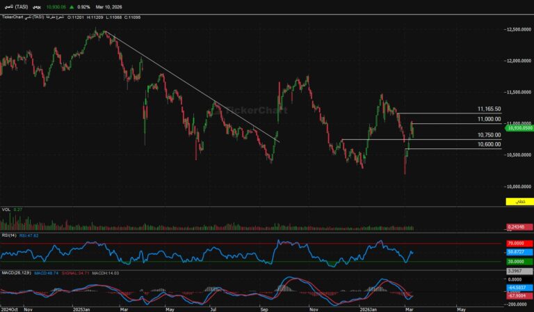 أنهى المؤشر جلسة الثلاثاء عند مستويات 10930 صاعد 99 نقطةالدعوم الحالية للمؤشرالدعم الحالي 10750المقاومات الحالية للمؤشرالمقاومه الحالية للمؤشر 11000