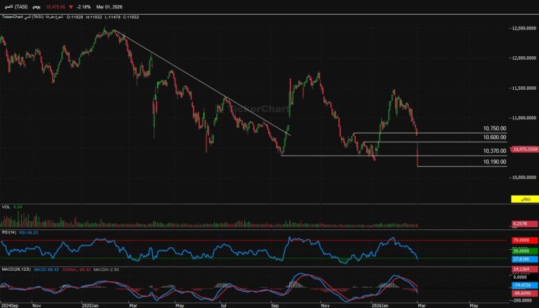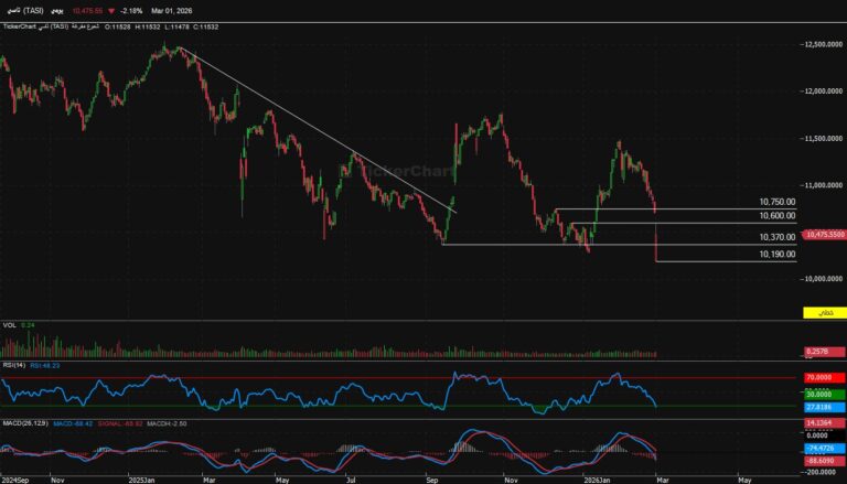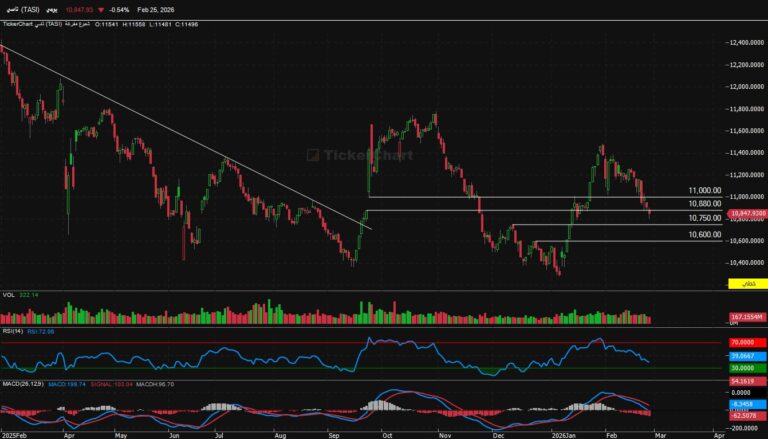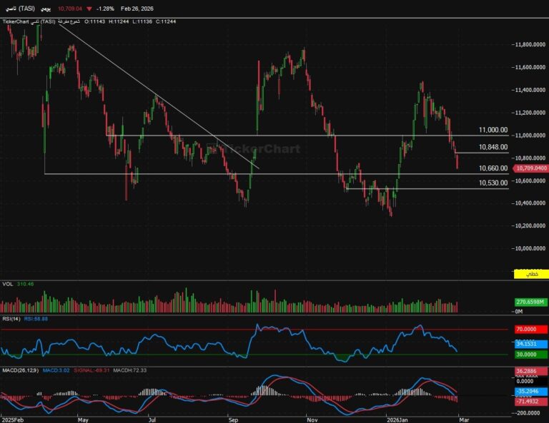 أنهى المؤشر جلسة الاربعاء عند مستويات 10847 بانخفاض 58- نقطةالدعوم الحالية للمؤشر الدعم الحالي 10750المقاومات الحالية للمؤشر المقاومه الحالية للمؤشر...