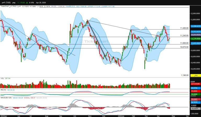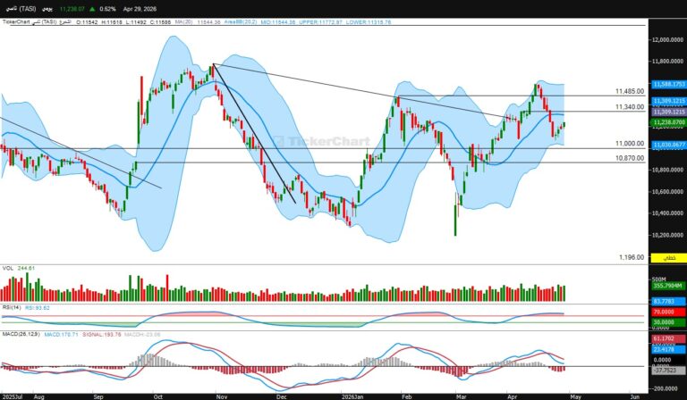أنهى المؤشر جلسة الاربعاء عند مستويات 11238 صعود 58 نقطةالدعوم الحالية للمؤشرالدعم الحالي 11000المقاومات الحالية للمؤشرالمقاومه الحالية للمؤشر 11340