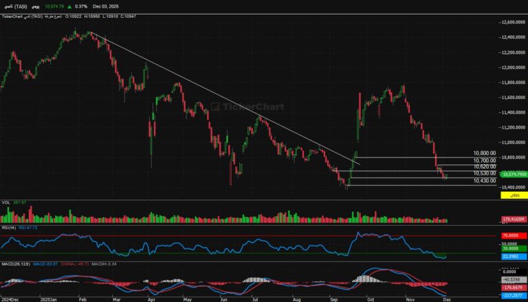 مؤشر افتتاح جلسة اليوم الخميس 4/12/2025 أنهى المؤشر جلسة الاربعاء عند مستويات 10574 بارتفاع 38 نقطةالدعوم الحالية للمؤشرالدعم الحالي 10530المقاومات...