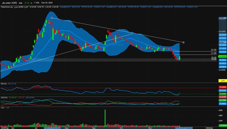 يتداول سهم سينومي ريتيل (4240) داخل اتجاه عرضي على المدى القصير، مع تركّز الحركة السعرية بين مستويات دعم ومقاومة واضحة،...